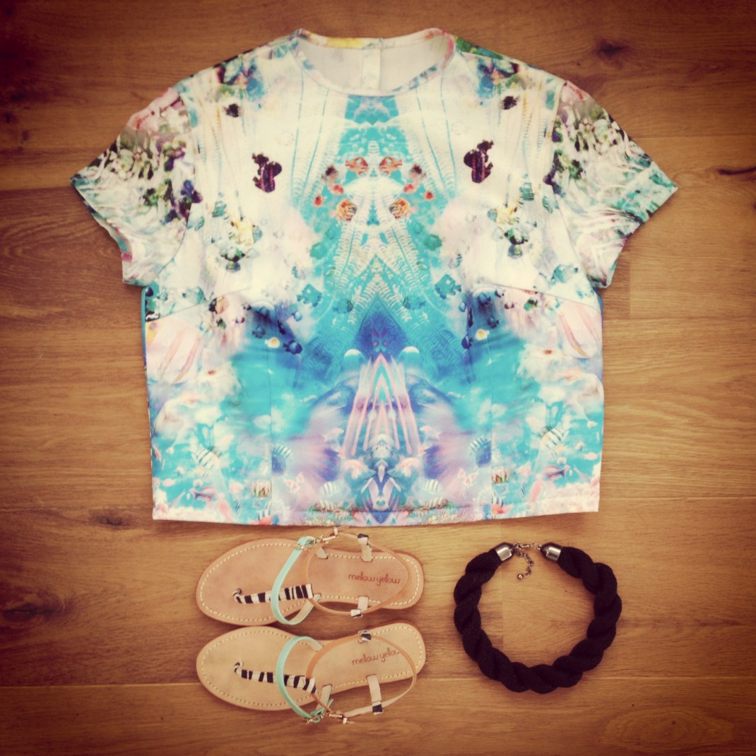 Bloemen, vogels, vissen, blauw, roze, felgeel, kort, lang, oversized, getailleerd, combineer deze zomer verschillende printjes en laat je kleding het woord doen! Dit vrolijke korte modelletje komt uit de Burda Style mei 2012.